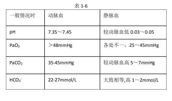 動脈血血氣分析結果與靜脈血血氣分析結果有一定的差別(表1-6)。當循環(huán)功能不好時,動脈和中心靜脈之間的ΔpH、ΔPaCO2、ΔHCO3-差值會增大,提示預后不好。靜脈血血氣分析只能用于判斷酸堿失衡,而不能用于判斷呼吸功能。