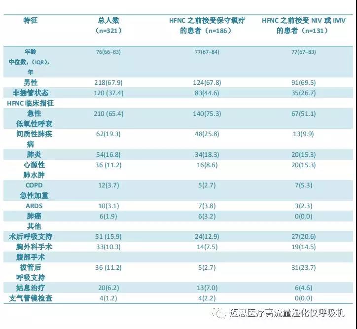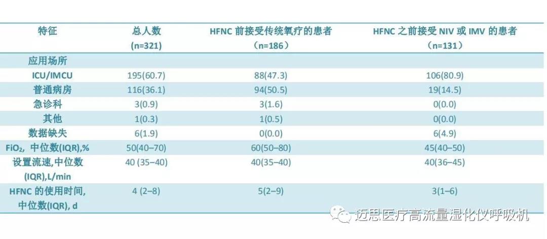 d在進(jìn)行HFNC前,120名患者接受了傳統(tǒng)氧療,其中53名為無創(chuàng)通氣NIV,45名為有創(chuàng)機(jī)械通氣IMV
