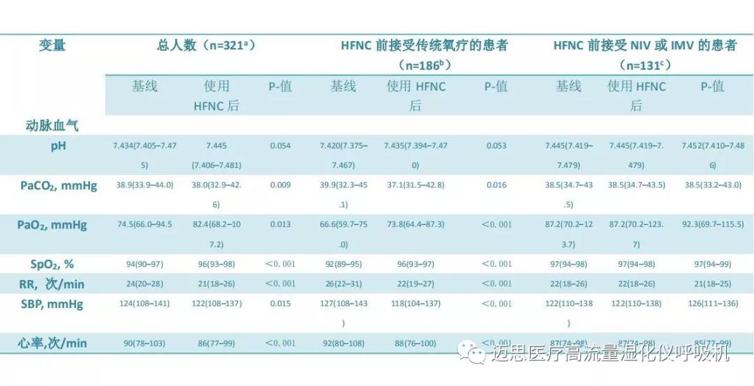 我們描述了在真實(shí)世界中HFNC患者的基本特征,臨床適應(yīng)癥和實(shí)際使用設(shè)置。我們還證實(shí)了HFNC對患者呼吸參數(shù)的積極影響。有關(guān)HFNC在既往臨床試驗(yàn)之外的人群中的療效和安
