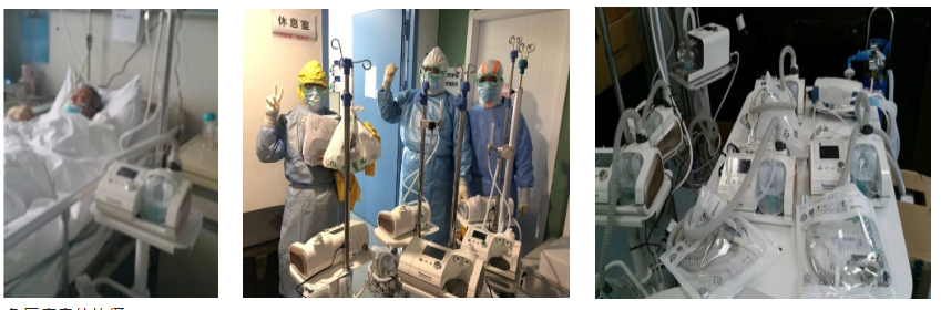 國內(nèi)頂 級的北京中日醫(yī)院呼吸重癥四部詹慶元教授團隊,負責武漢同濟醫(yī)院中法院區(qū)的一個病區(qū),邁思醫(yī)療10臺高流量氧療設(shè)備在連續(xù)使用。