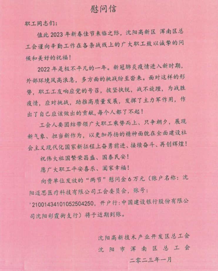 3.沈陽市總工會及渾南區(qū)領(lǐng)導(dǎo)頒發(fā)職工慰問津貼。