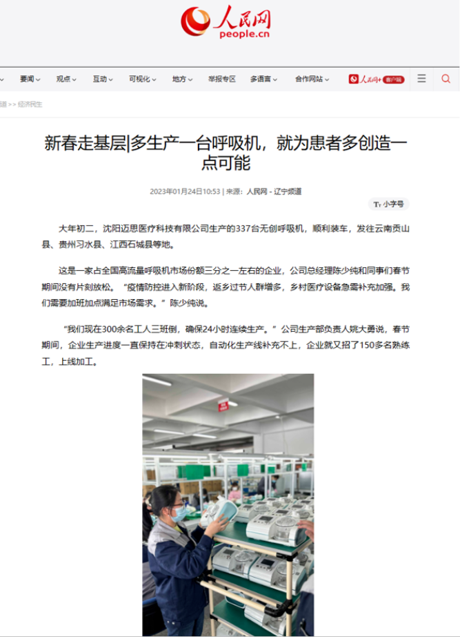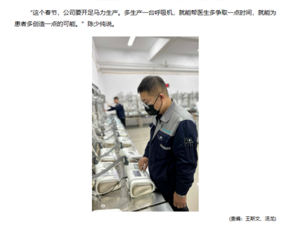 來源人民網(wǎng):新春走基層|多生產(chǎn)一臺呼吸機(jī),就為患者多創(chuàng)造一點(diǎn)可能 (people.com.cn)