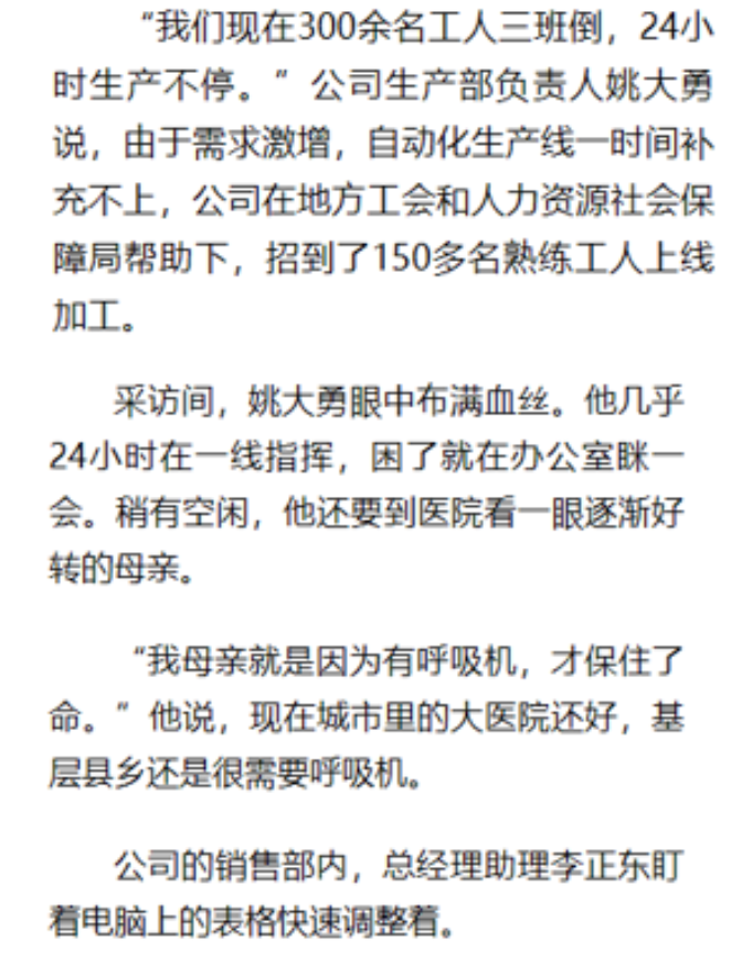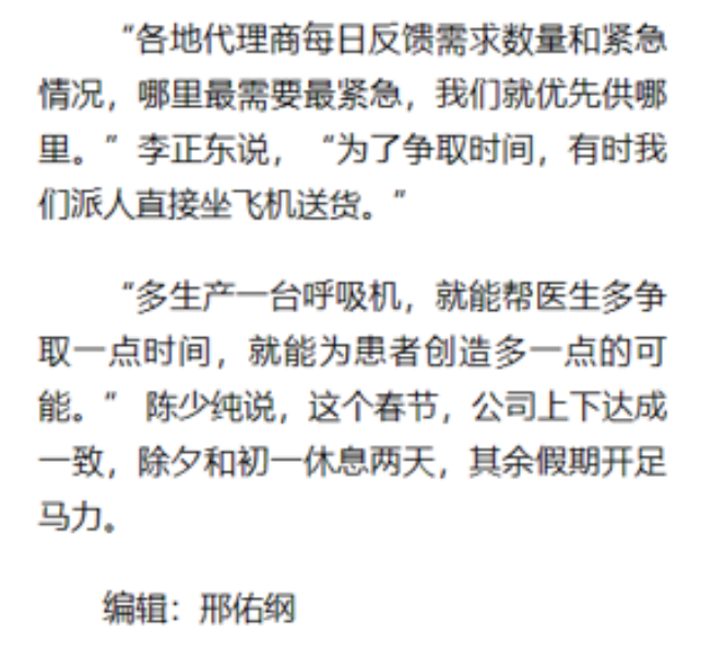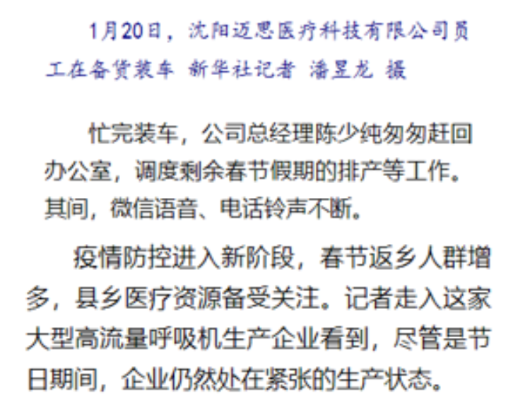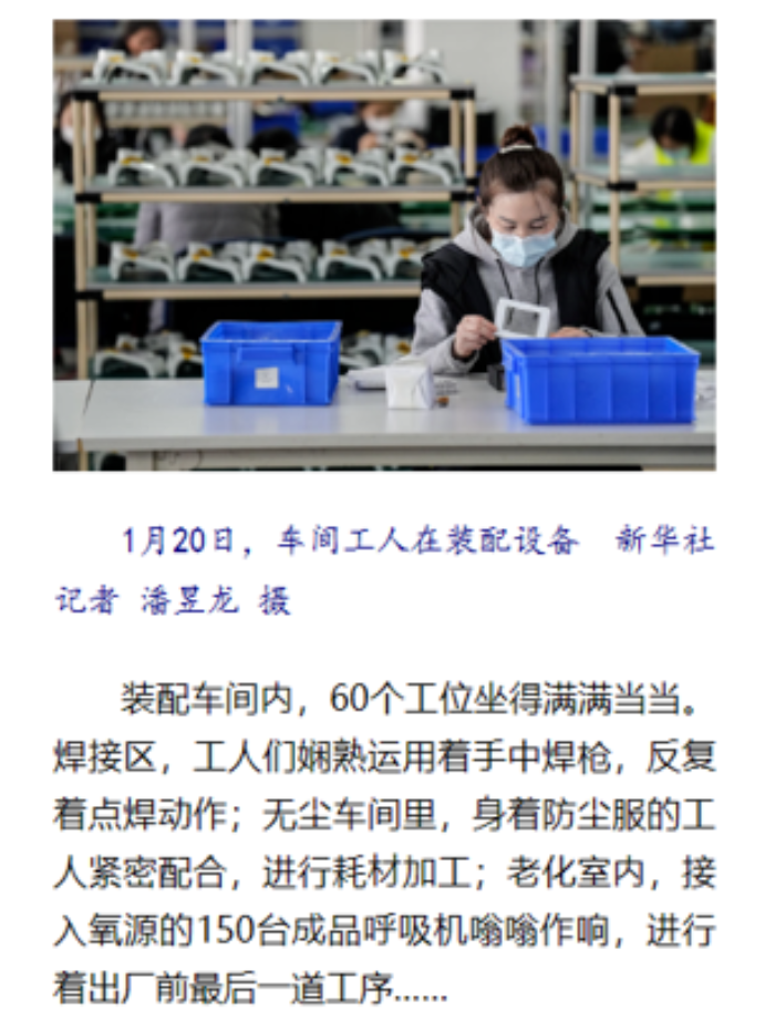 來源新華社:探訪呼吸機(jī)生產(chǎn)企業(yè):加班加點(diǎn) 支援縣鄉(xiāng) – 新華社客戶端 (xinhuaxmt.com)