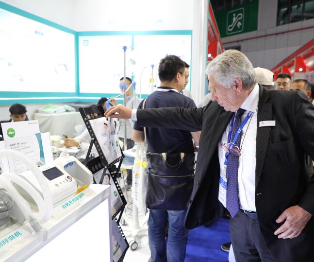 邁思醫(yī)療在國家會展中心7.1號展館D27、D29展位展出Hifent?系列高流量呼吸濕化治療儀及多種配套耗材產(chǎn)品,邁思呼吸機、制氧機。于會展首日舉辦了2019代理商答謝晚宴,并在期間發(fā)布新品?BPAP HF及新型加熱管路。
