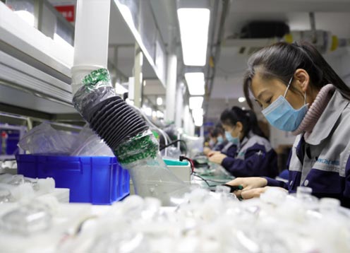 1月31日,沈陽邁思醫(yī)療科技有限公司員工在車間生產(chǎn)無創(chuàng)呼吸機。